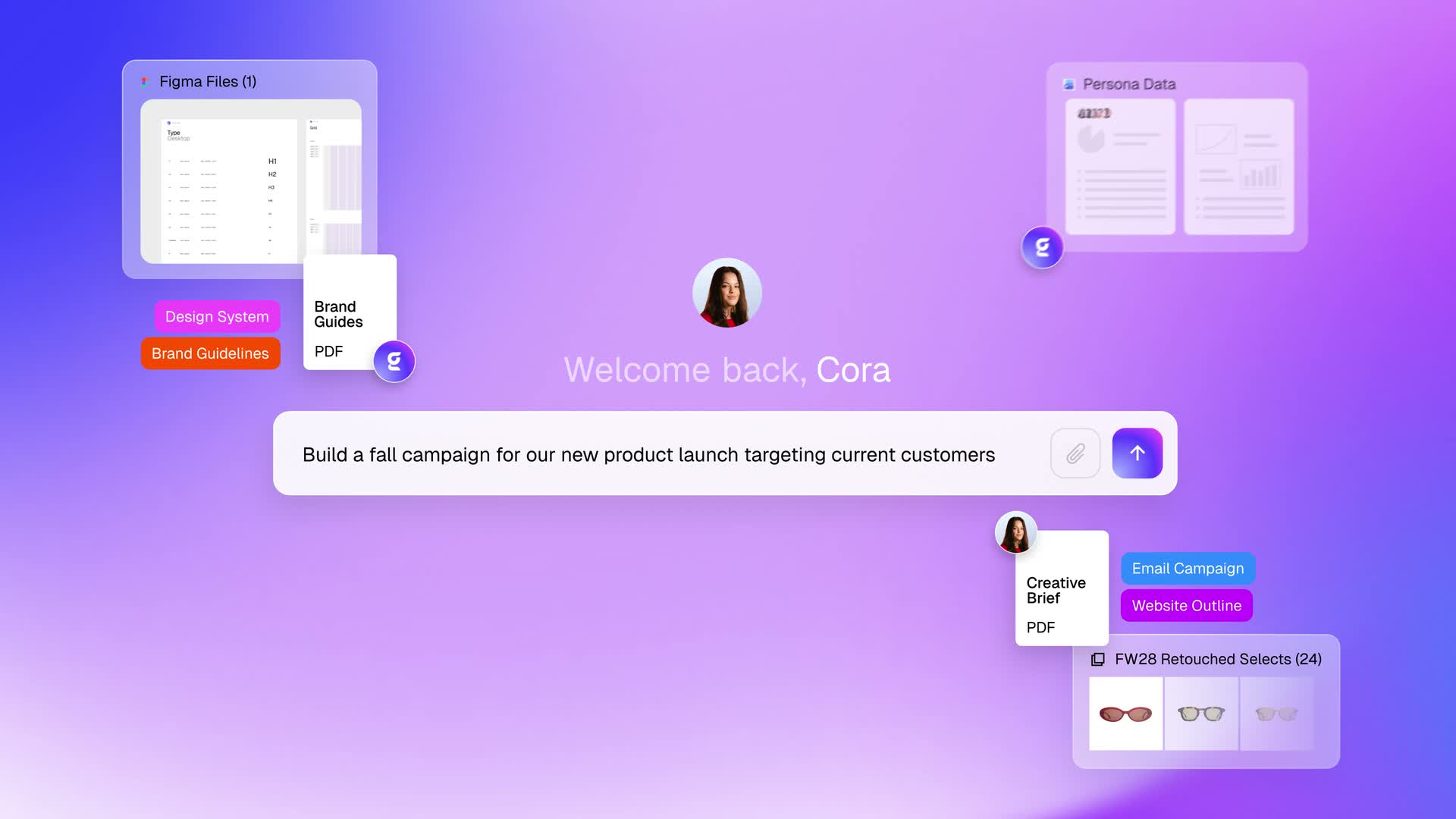 Gradial connects to your CMS, DAM, ticketing systems, design tools, CDPs, and more, creating a shared system of organizational context. This long term memory is a knowledge graph that agents reference and act on.